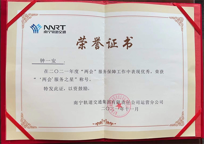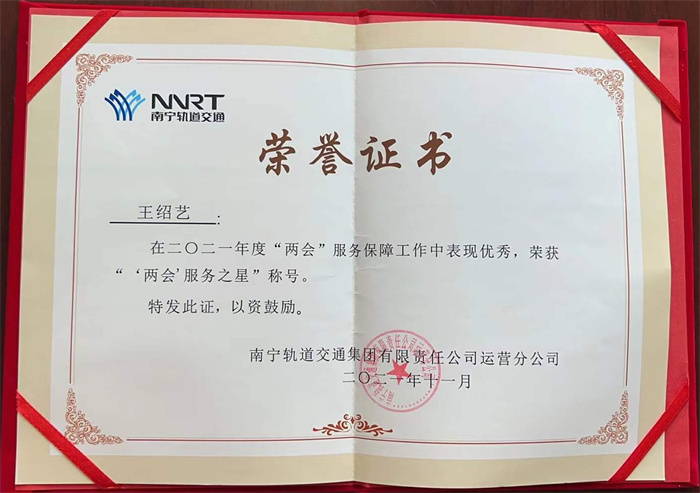 其中,4號(hào)線站務(wù)助理王紹藝、鐘一安在“兩會(huì)”保障工作中,積極了解政策,熱心解答來賓乘車疑問。遇進(jìn)站大客流的情況時(shí),他們積極搬運(yùn)客控物質(zhì),迅速引流進(jìn)站人員,有效避免了站臺(tái)壓力過大。他們的工作獲得了南寧軌道交通的認(rèn)可,榮獲“‘兩會(huì)’服務(wù)之星”的稱號(hào)。
