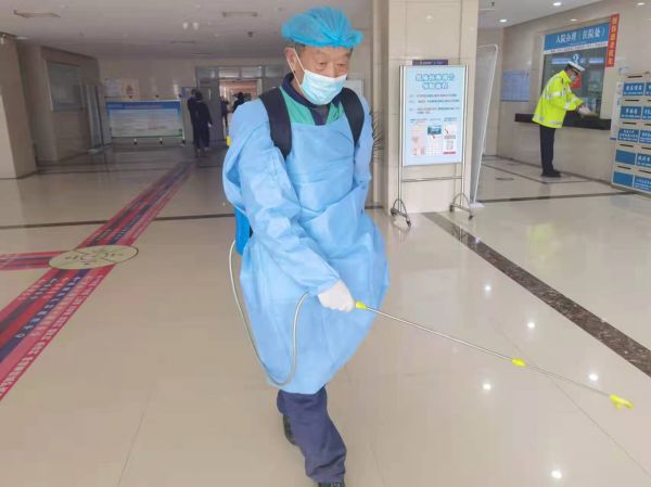 這位保潔師傅叫---尤慶安,是洛陽分公司在東方醫(yī)院后勤服務(wù)的一名保潔員。自新冠疫情防控開始,每天早晨傍晚尤慶安師傅都在院區(qū)的公共區(qū)域消毒。